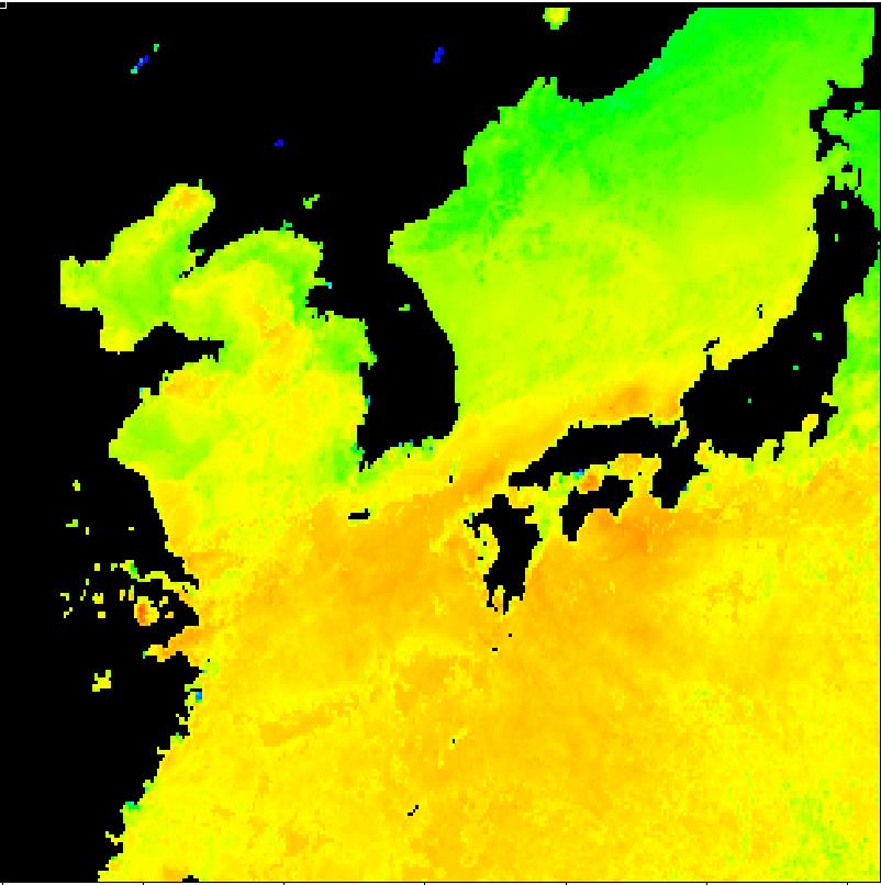 | 구름 제거 수온 영상(2012년 8월 16일) | |||||