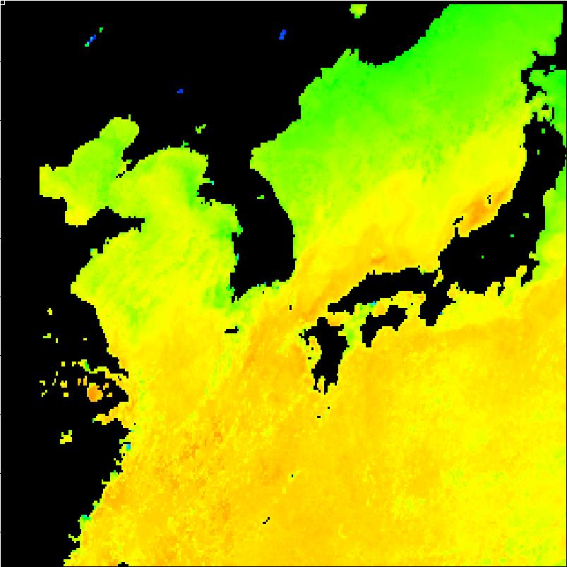 | 구름 제거 수온 영상(2012년 8월 19일) | |||||