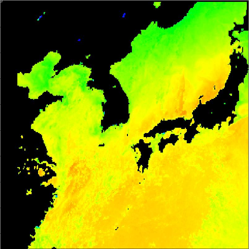 | 구름 제거 수온 영상(2012년 8월 22일) | |||||