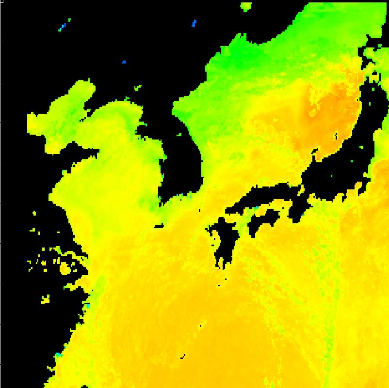 | 구름 제거 수온 영상(2012년 8월 27일) | |||||