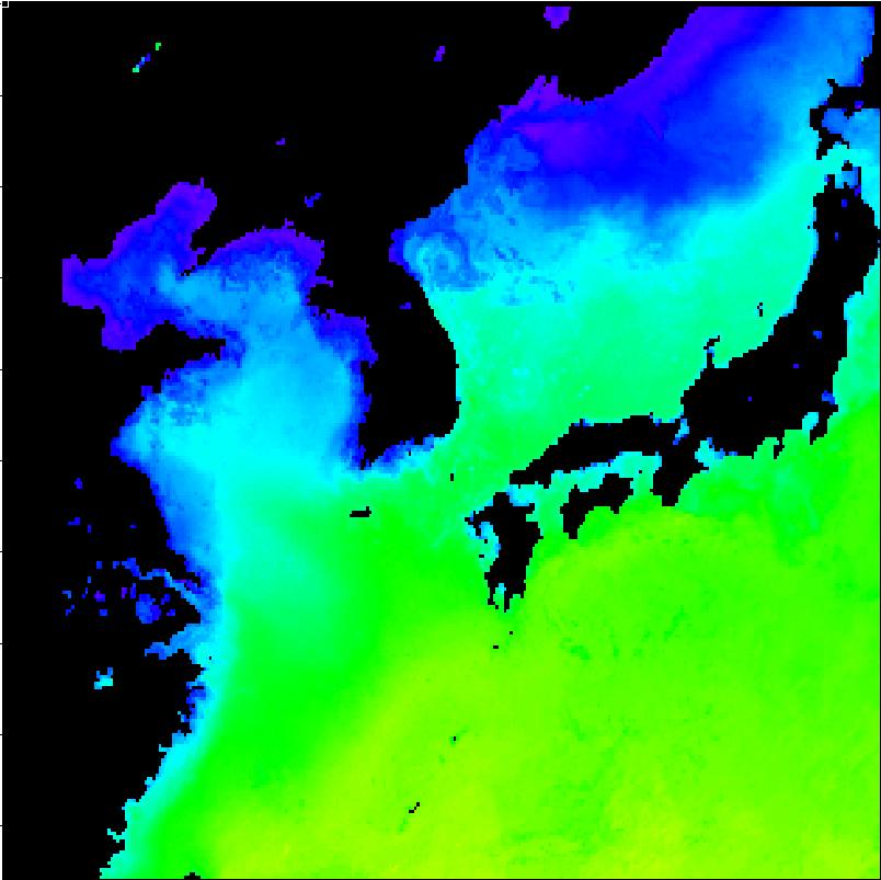 | 구름 제거 수온 영상(2012년 12월 19일) | |||||