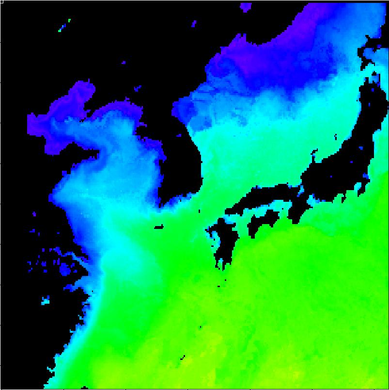 | 구름 제거 수온 영상(2012년 12월 25일) | |||||