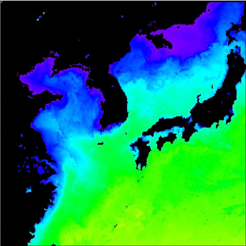 | 구름 제거 수온 영상(2012년 12월 29일) | |||||