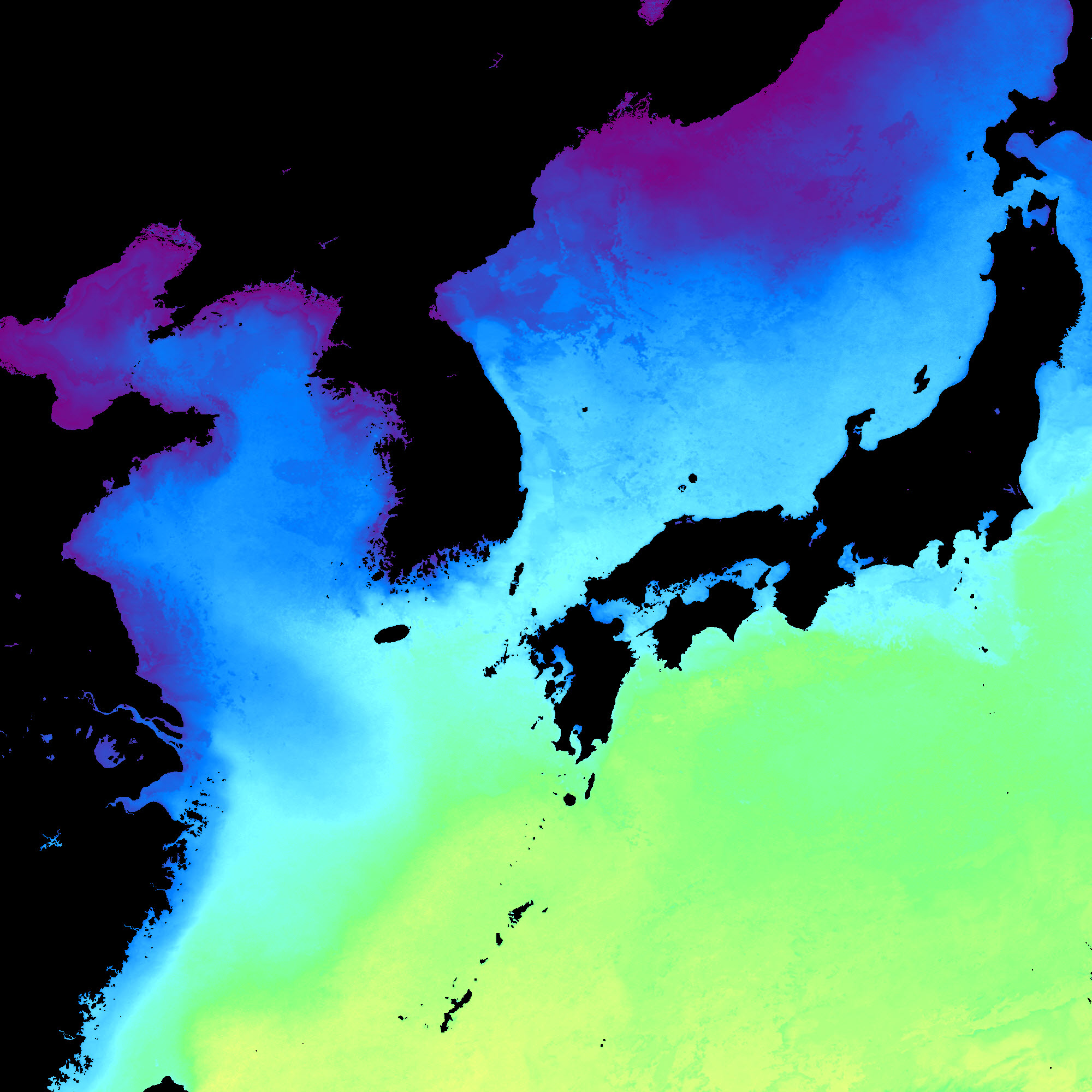| 구름 제거 수온 영상(2013년 01월 03일) | |||||