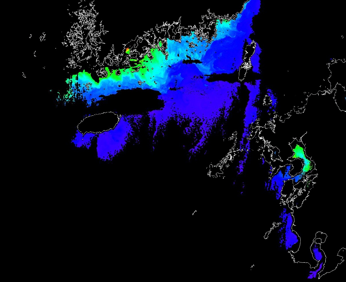 o 2013년 01월 04일 천리안 GOCI 위성영상입니다. [ GOCI : Geostationary Ocean Color Imager ] o 농도분포는 하단 범례를 참고하시기 바랍니다. o 검은색은 구름을 나타냅니다. o 그림을 클릭하시면 크게 보실 수 있습니다. o 천리안 GOCI 클로로필 a 동해지역. o 천리안 GOCI 클로로필 a 서해지역. o 천리안 GOCI 클로로필 a 남해지역. 천리안 GOCI 클로로필 a 둥중국해지역. o 천리안 GOCI 클로로필 a 대화퇴지역. ![]() 천리안 GOCI 영상은 한국해양과학기술원 해양위성센터에서 수신하였습니다. |