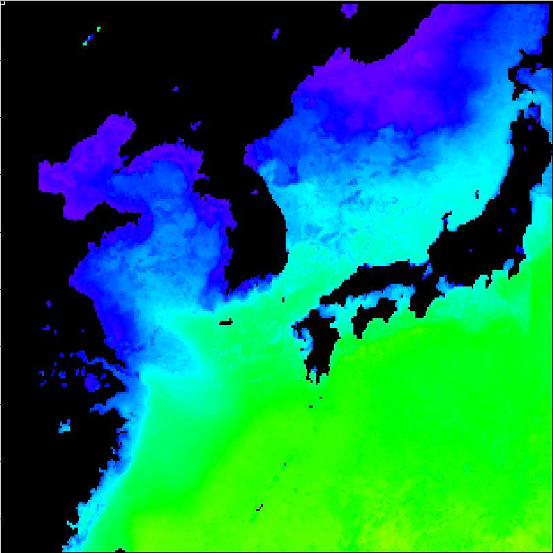 | 구름 제거 수온 영상(2013년 01월 08일) | |||||