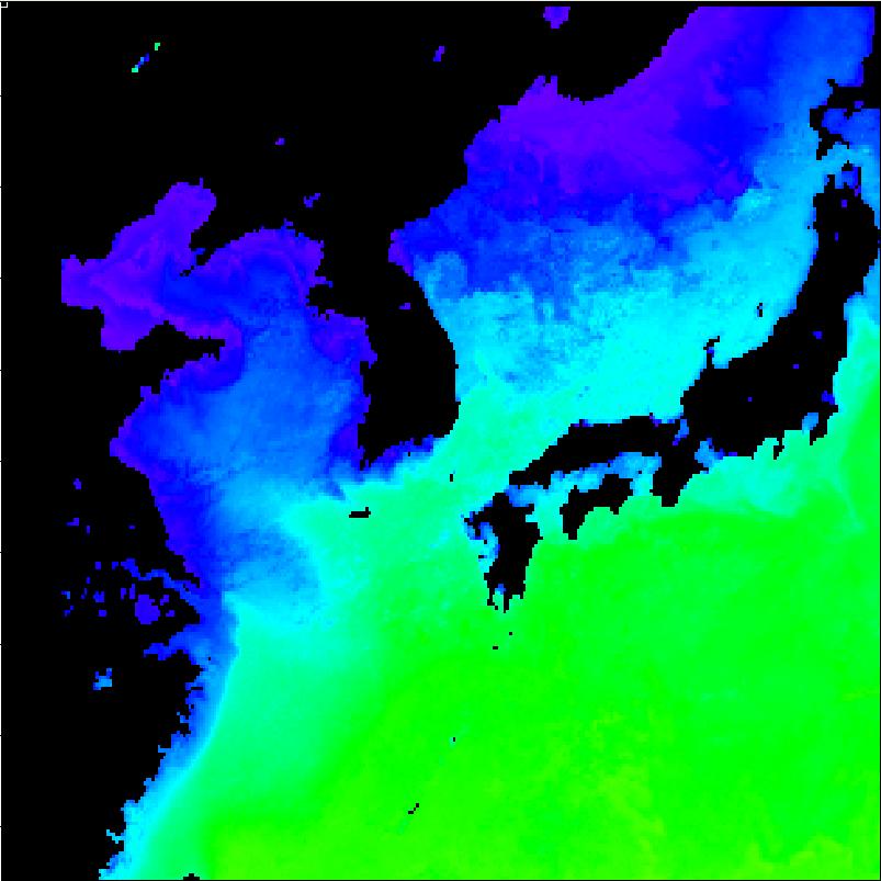 | 구름 제거 수온 영상(2013년 01월 12일) | |||||