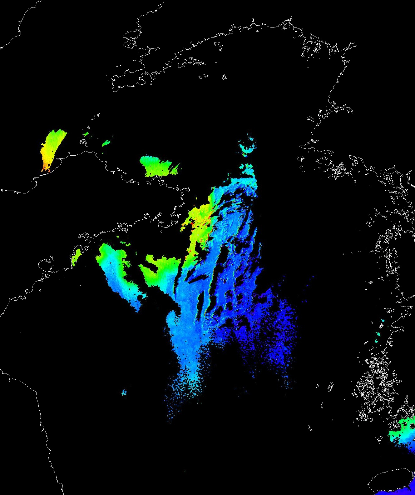 o 2013년 01월 18일 천리안 GOCI 위성영상입니다. [ GOCI : Geostationary Ocean Color Imager ] o 농도분포는 하단 범례를 참고하시기 바랍니다. o 검은색은 구름을 나타냅니다. o 그림을 클릭하시면 크게 보실 수 있습니다. o 천리안 GOCI 클로로필 a 동해지역. o 천리안 GOCI 클로로필 a 서해지역. o 천리안 GOCI 클로로필 a 남해지역. 천리안 GOCI 클로로필 a 둥중국해지역. o 천리안 GOCI 클로로필 a 대화퇴지역. ![]() 천리안 GOCI 영상은 한국해양과학기술원 해양위성센터에서 수신하였습니다. |