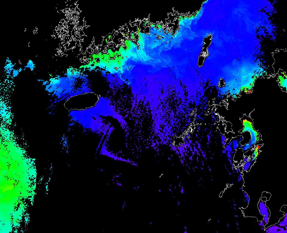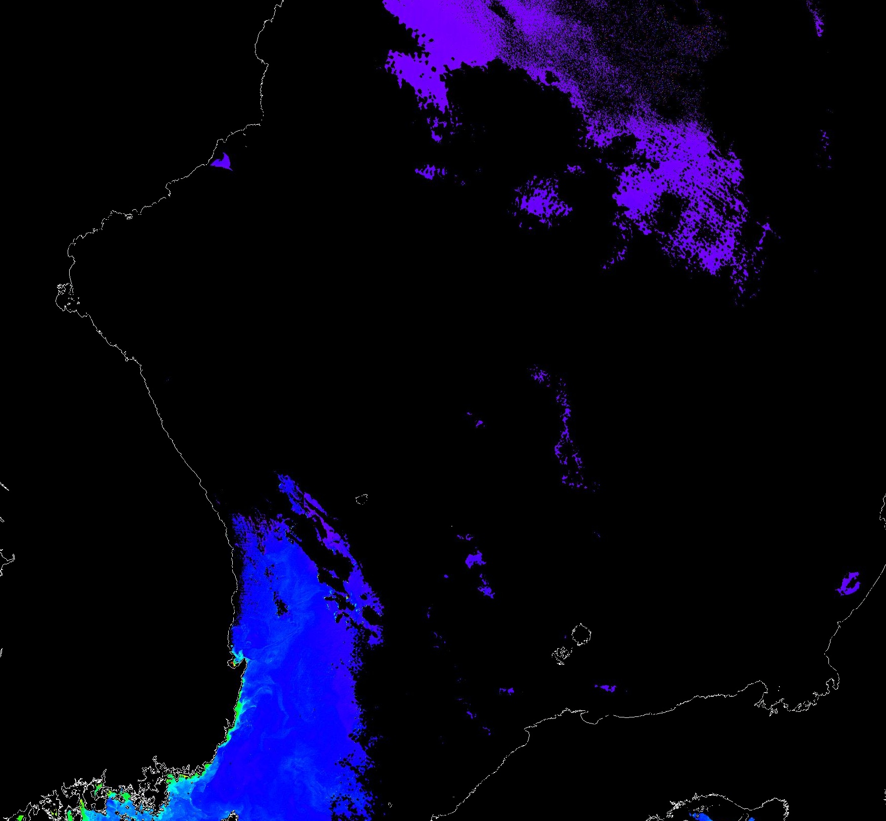 o 2013년 01월 28일 천리안 GOCI 위성영상입니다. [ GOCI : Geostationary Ocean Color Imager ] o 농도분포는 하단 범례를 참고하시기 바랍니다. o 검은색은 구름을 나타냅니다. o 그림을 클릭하시면 크게 보실 수 있습니다. o 천리안 GOCI 클로로필 a 동해지역. o 천리안 GOCI 클로로필 a 서해지역. o 천리안 GOCI 클로로필 a 남해지역. 천리안 GOCI 클로로필 a 둥중국해지역. o 천리안 GOCI 클로로필 a 대화퇴지역. ![]() 천리안 GOCI 영상은 한국해양과학기술원 해양위성센터에서 수신하였습니다. |
