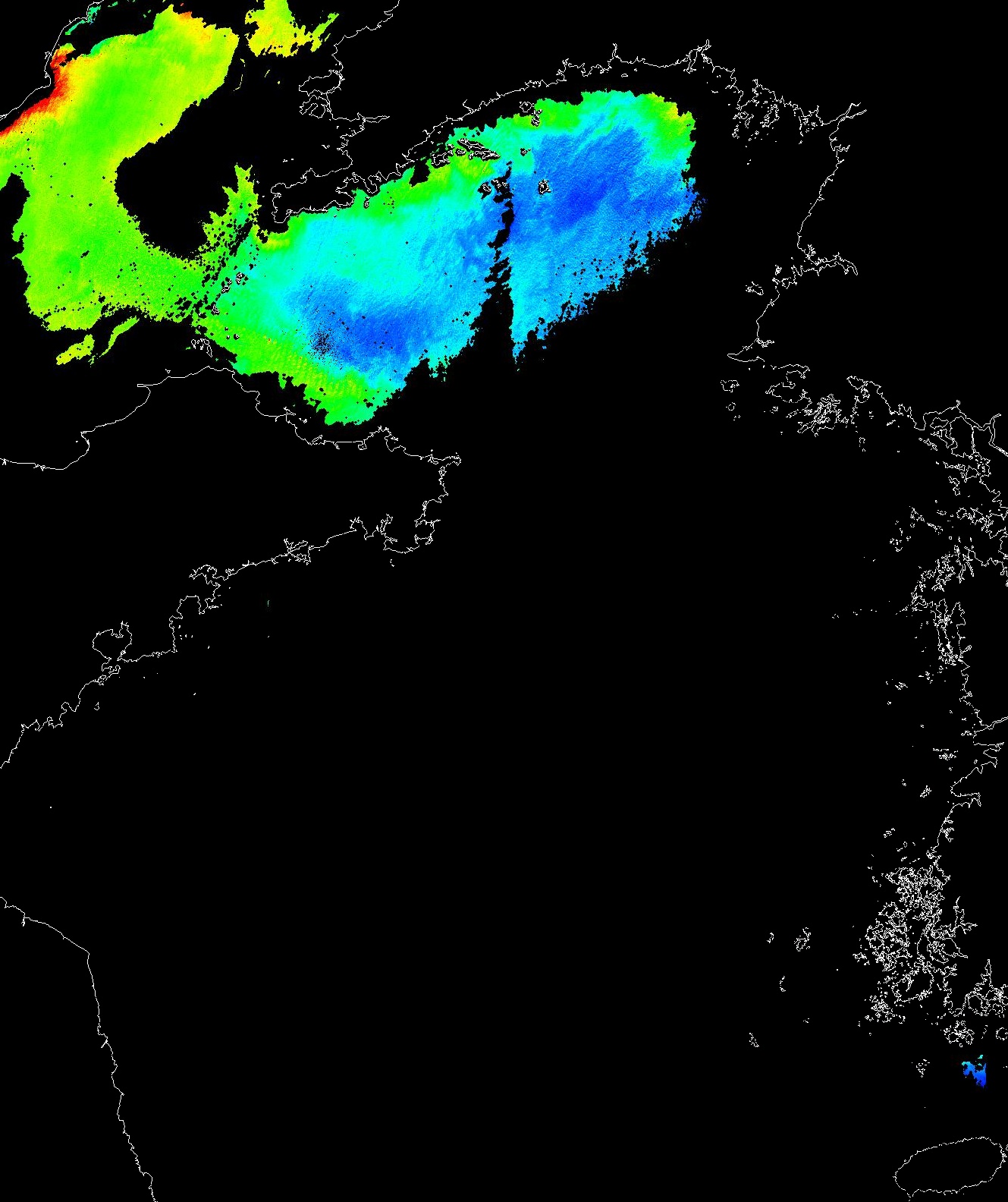 o 2013년 02월 04일 천리안 GOCI 위성영상입니다. [ GOCI : Geostationary Ocean Color Imager ] o 농도분포는 하단 범례를 참고하시기 바랍니다. o 검은색은 구름을 나타냅니다. o 그림을 클릭하시면 크게 보실 수 있습니다. o 천리안 GOCI 클로로필 a 동해지역. o 천리안 GOCI 클로로필 a 서해지역. o 천리안 GOCI 클로로필 a 남해지역. 천리안 GOCI 클로로필 a 둥중국해지역. o 천리안 GOCI 클로로필 a 대화퇴지역. ![]() 천리안 GOCI 영상은 한국해양과학기술원 해양위성센터에서 수신하였습니다. |