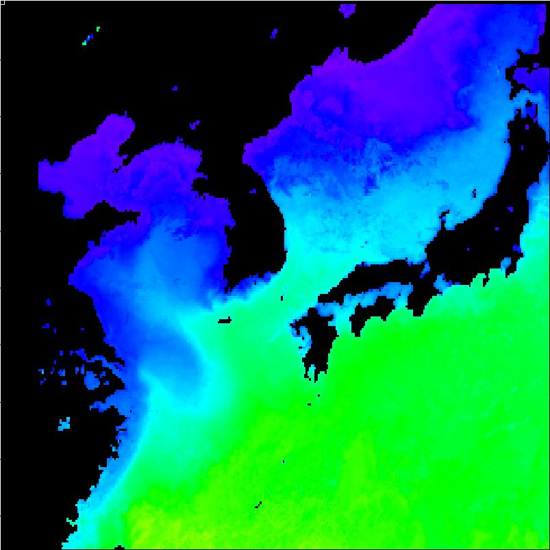 | 구름 제거 수온 영상(2013년 02월 18일) | |||||