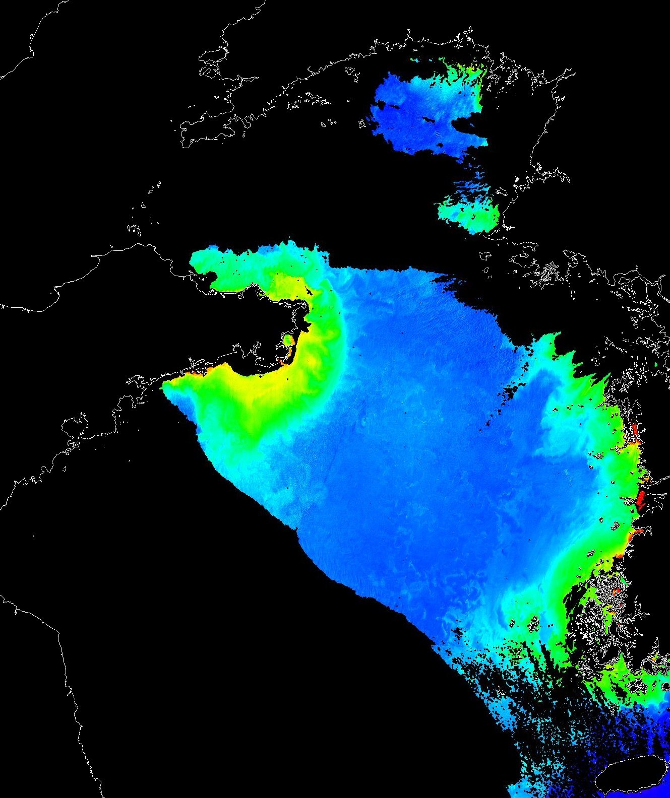 o 2013년 02월 23일 천리안 GOCI 위성영상입니다. [ GOCI : Geostationary Ocean Color Imager ] o 농도분포는 하단 범례를 참고하시기 바랍니다. o 검은색은 구름을 나타냅니다. o 그림을 클릭하시면 크게 보실 수 있습니다. o 천리안 GOCI 클로로필 a 동해지역. o 천리안 GOCI 클로로필 a 서해지역. o 천리안 GOCI 클로로필 a 남해지역. 천리안 GOCI 클로로필 a 둥중국해지역. o 천리안 GOCI 클로로필 a 대화퇴지역. ![]() 천리안 GOCI 영상은 한국해양과학기술원 해양위성센터에서 수신하였습니다. |