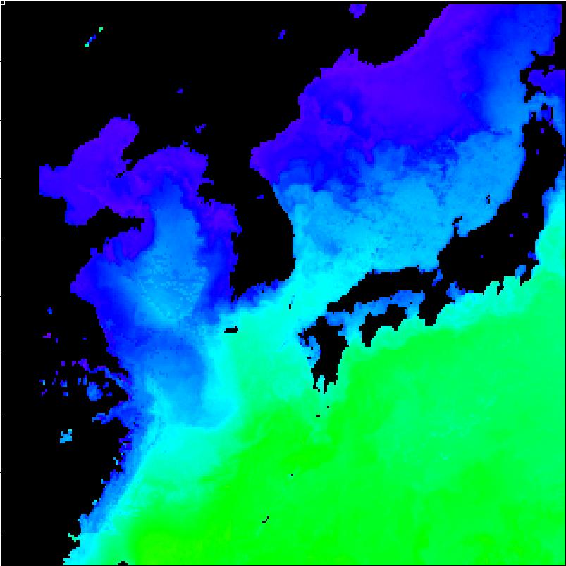 | 구름 제거 수온 영상(2013년 02월 22일) | |||||