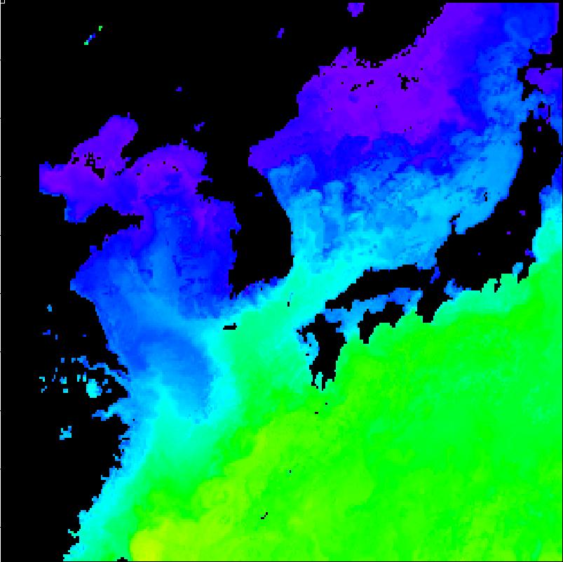 국립수산과학원 위성해양정보실에서 연구중인 2013년 03월 07일 구름이 배제된 수온 영상입니다 |