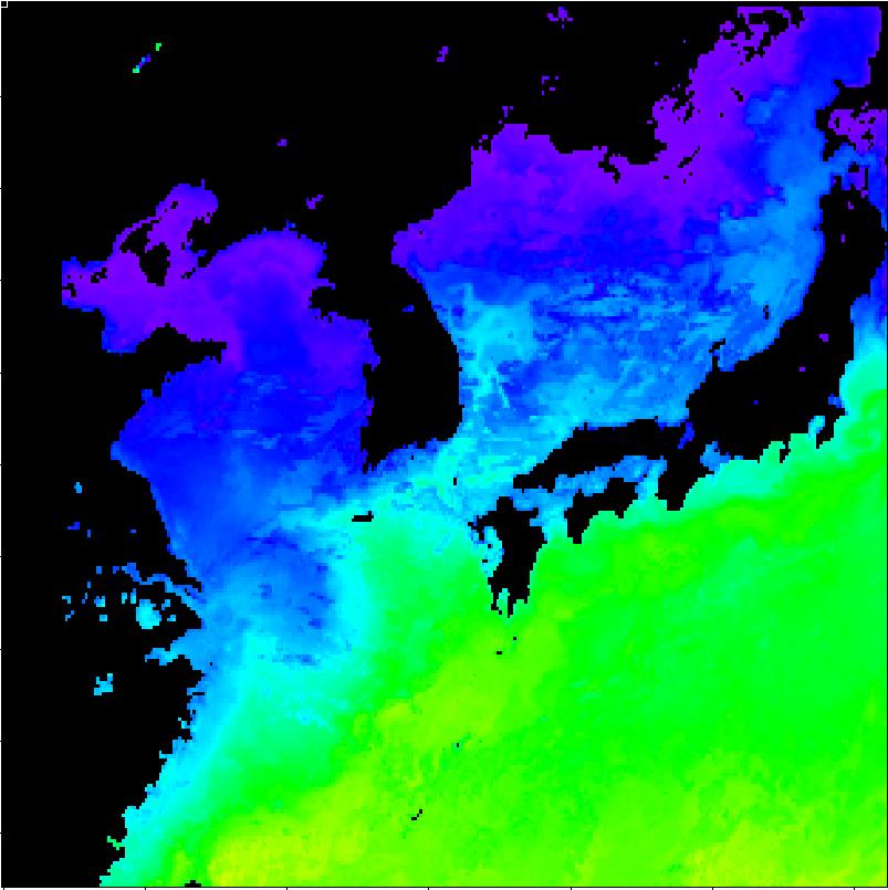 국립수산과학원 위성해양정보실에서 연구중인 2013년 03월 19일 구름이 배제된 수온 영상입니다 |