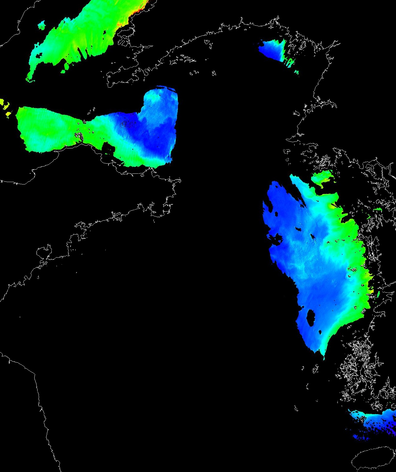 o 2013년 04월 10일 천리안 GOCI 위성영상입니다. [ GOCI : Geostationary Ocean Color Imager ] o 농도분포는 하단 범례를 참고하시기 바랍니다. o 검은색은 구름을 나타냅니다. o 그림을 클릭하시면 크게 보실 수 있습니다. o 천리안 GOCI 클로로필 a 동해지역. o 천리안 GOCI 클로로필 a 서해지역. o 천리안 GOCI 클로로필 a 남해지역. 천리안 GOCI 클로로필 a 둥중국해지역. o 천리안 GOCI 클로로필 a 대화퇴지역. ![]() 천리안 GOCI 영상은 한국해양과학기술원 해양위성센터에서 수신하였습니다. |