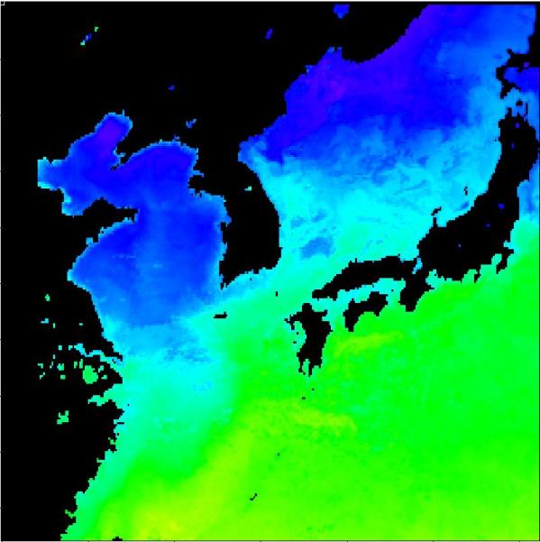 구름 제거 수온 영상(2013년 04월 19일)