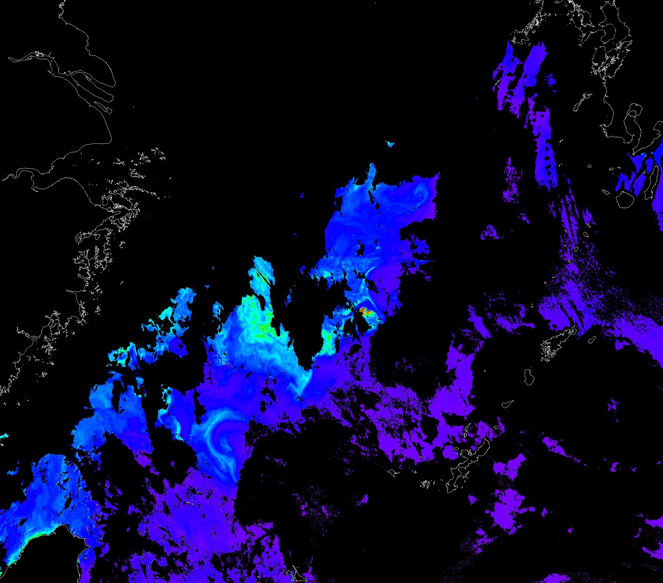 o 2013년 04월 29일 천리안 GOCI 위성영상입니다. [ GOCI : Geostationary Ocean Color Imager ] o 농도분포는 하단 범례를 참고하시기 바랍니다. o 검은색은 구름을 나타냅니다. o 그림을 클릭하시면 크게 보실 수 있습니다. o 천리안 GOCI 클로로필 a 동해지역. o 천리안 GOCI 클로로필 a 서해지역. o 천리안 GOCI 클로로필 a 남해지역. 천리안 GOCI 클로로필 a 둥중국해지역. o 천리안 GOCI 클로로필 a 대화퇴지역. ![]() 천리안 GOCI 영상은 한국해양과학기술원 해양위성센터에서 수신하였습니다. |