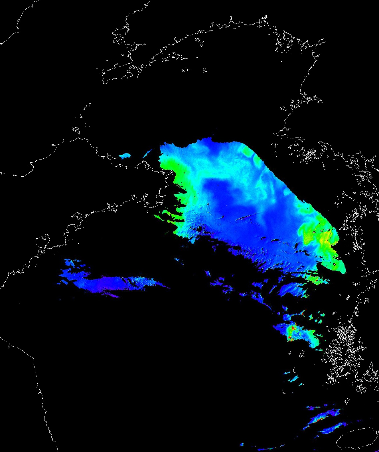 o 2013년 05월 06일 천리안 GOCI 위성영상입니다. [ GOCI : Geostationary Ocean Color Imager ] o 농도분포는 하단 범례를 참고하시기 바랍니다. o 검은색은 구름을 나타냅니다. o 그림을 클릭하시면 크게 보실 수 있습니다. o 천리안 GOCI 클로로필 a 동해지역. o 천리안 GOCI 클로로필 a 서해지역. o 천리안 GOCI 클로로필 a 남해지역. 천리안 GOCI 클로로필 a 둥중국해지역. o 천리안 GOCI 클로로필 a 대화퇴지역. ![]() 천리안 GOCI 영상은 한국해양과학기술원 해양위성센터에서 수신하였습니다. |