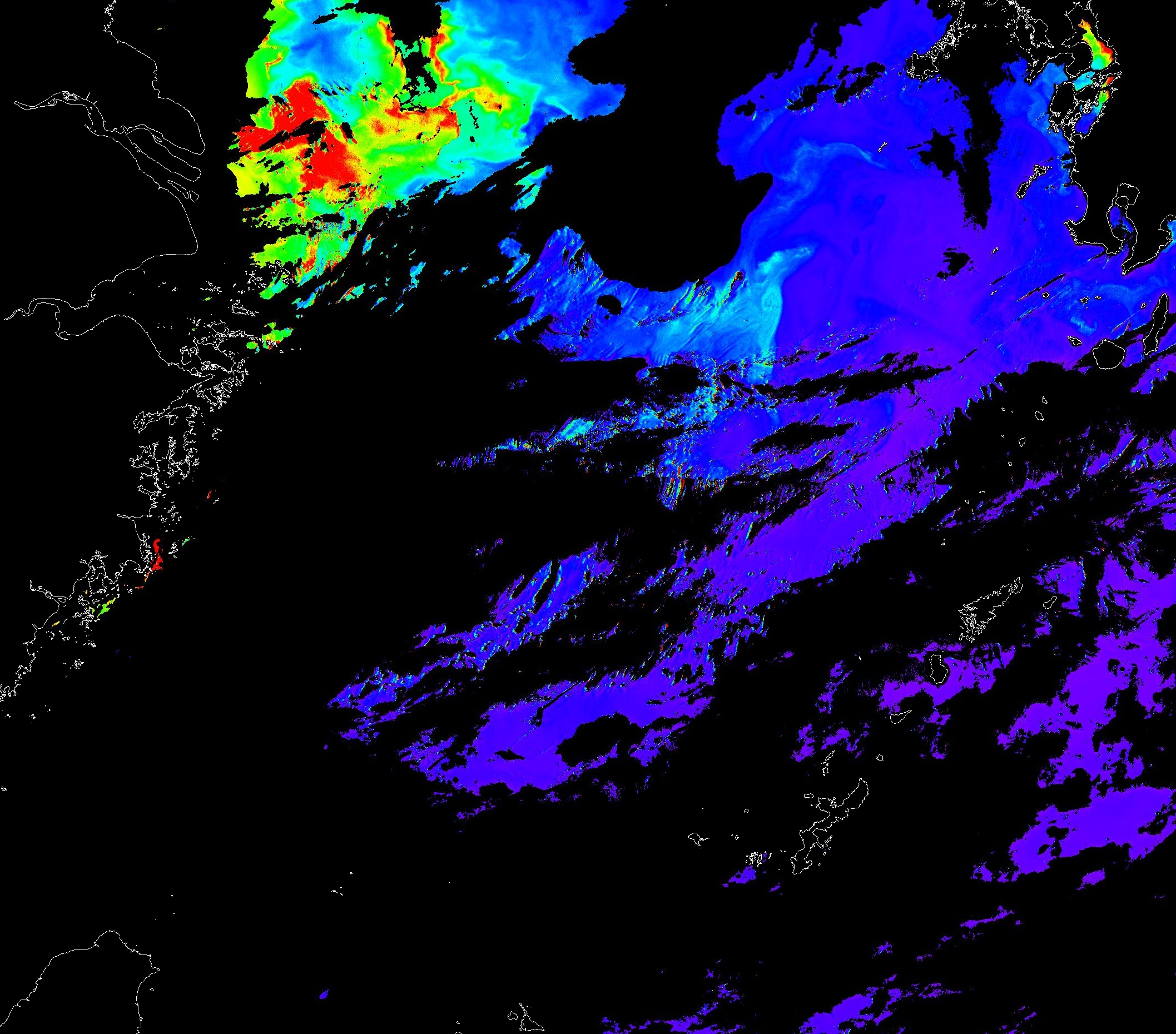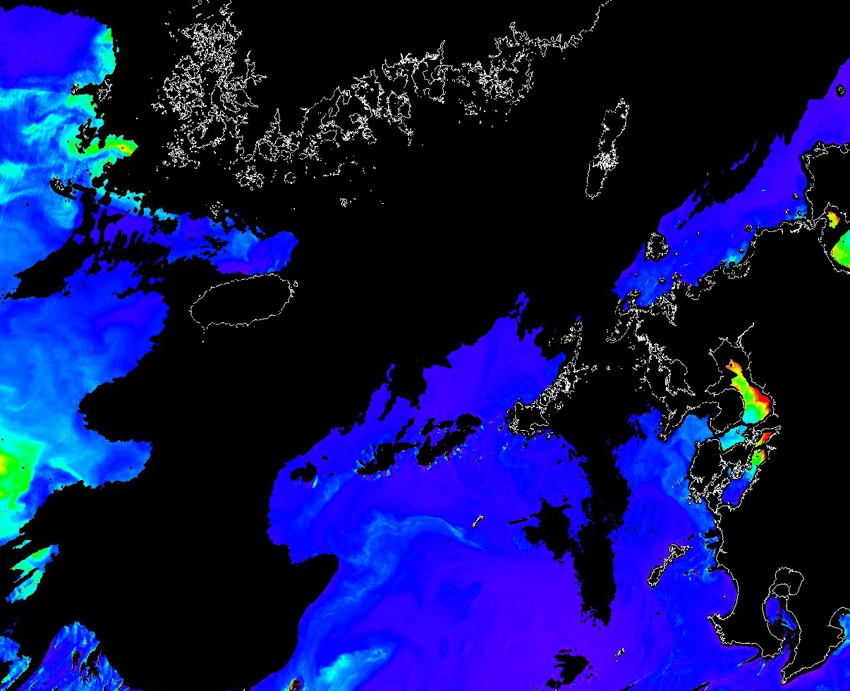 o 2013년 05월 12일 천리안 GOCI 위성영상입니다. [ GOCI : Geostationary Ocean Color Imager ] o 농도분포는 하단 범례를 참고하시기 바랍니다. o 검은색은 구름을 나타냅니다. o 그림을 클릭하시면 크게 보실 수 있습니다. o 천리안 GOCI 클로로필 a 동해지역. o 천리안 GOCI 클로로필 a 서해지역. o 천리안 GOCI 클로로필 a 남해지역. 천리안 GOCI 클로로필 a 둥중국해지역. o 천리안 GOCI 클로로필 a 대화퇴지역. ![]() 천리안 GOCI 영상은 한국해양과학기술원 해양위성센터에서 수신하였습니다. |