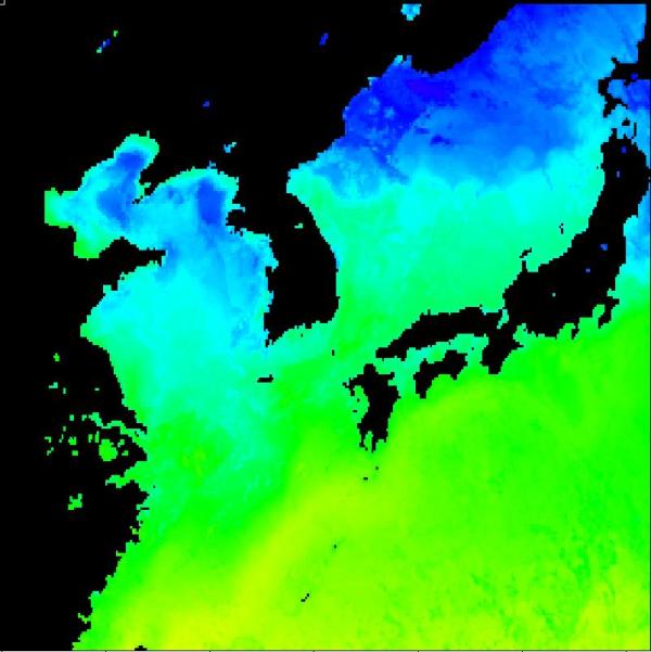 국립수산과학원 위성해양정보실에서 연구중인 2013년 05월 11일 구름이 배제된 수온 영상입니다