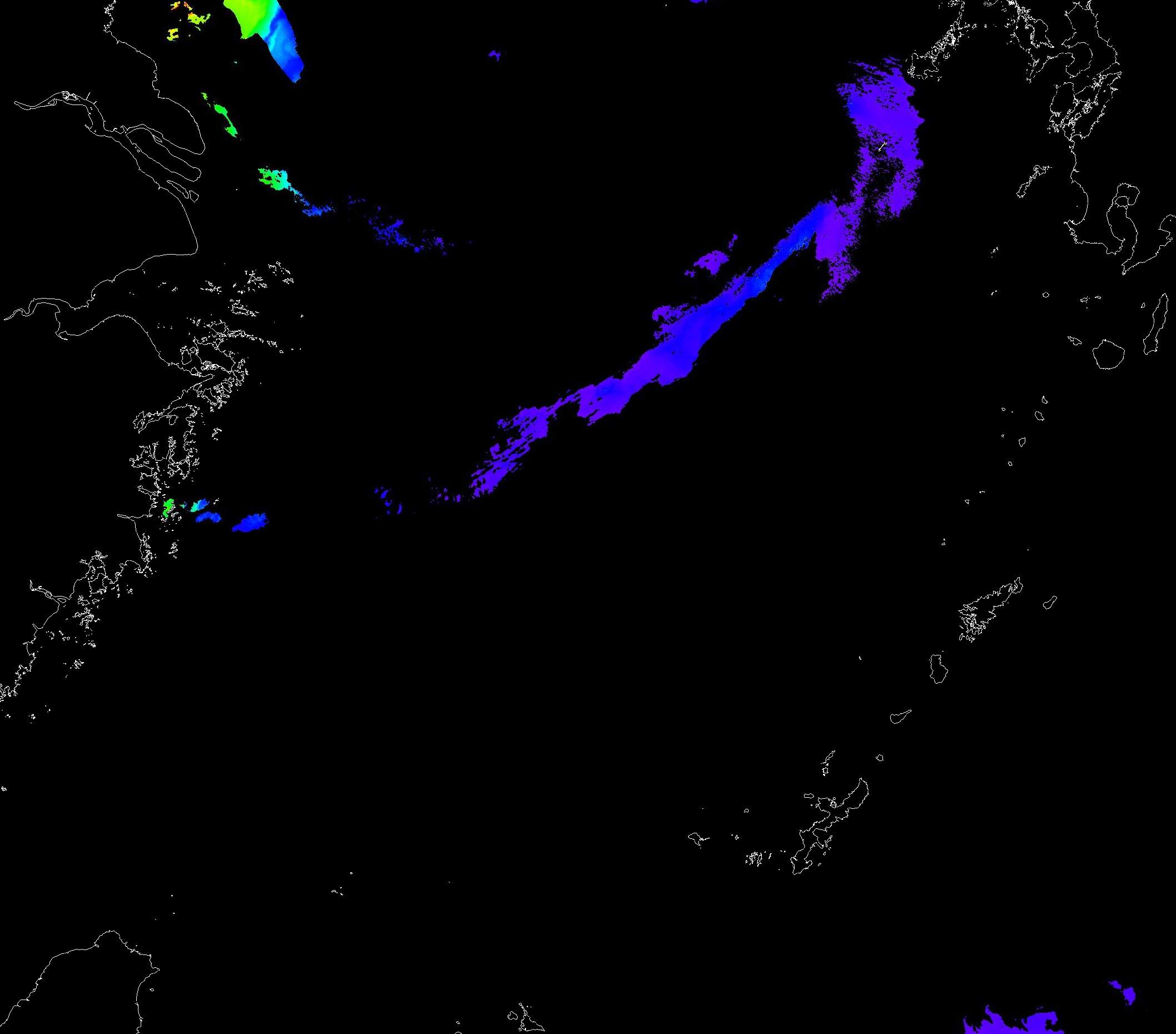 o 2013년 05월 19일 천리안 GOCI 위성영상입니다. [ GOCI : Geostationary Ocean Color Imager ] o 농도분포는 하단 범례를 참고하시기 바랍니다. o 검은색은 구름을 나타냅니다. o 그림을 클릭하시면 크게 보실 수 있습니다. o 천리안 GOCI 클로로필 a 동해지역. o 천리안 GOCI 클로로필 a 서해지역. o 천리안 GOCI 클로로필 a 남해지역. 천리안 GOCI 클로로필 a 둥중국해지역. o 천리안 GOCI 클로로필 a 대화퇴지역. ![]() 천리안 GOCI 영상은 한국해양과학기술원 해양위성센터에서 수신하였습니다. |