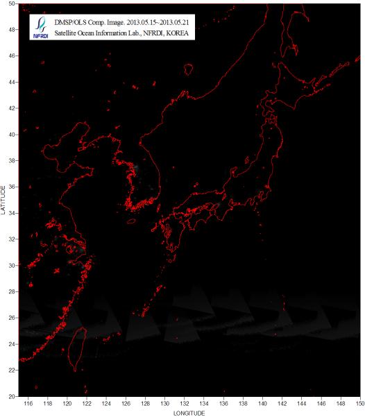 o 2013년 05월 22일자 합성 DMSP/OLS 위성영상입니다.