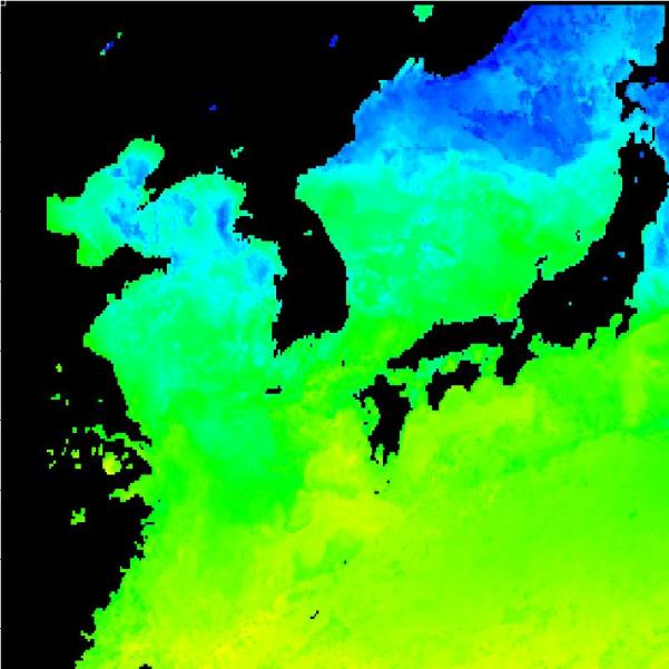 국립수산과학원 위성해양정보실에서 연구중인 2013년 05월 24일 구름이 배제된 수온 영상입니다.