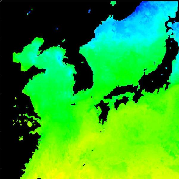 국립수산과학원 위성해양정보실에서 연구중인 2013년 05월 27일 구름이 배제된 수온 영상입니다.