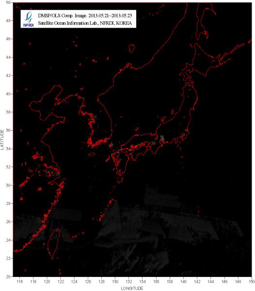 o 2013년 05월 29일자 합성 DMSP/OLS 위성영상입니다.
