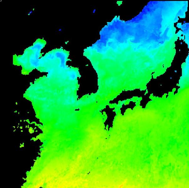 국립수산과학원 위성해양정보실에서 연구중인 2013년 05월 30일 구름이 제거 된 수온 영상입니다.