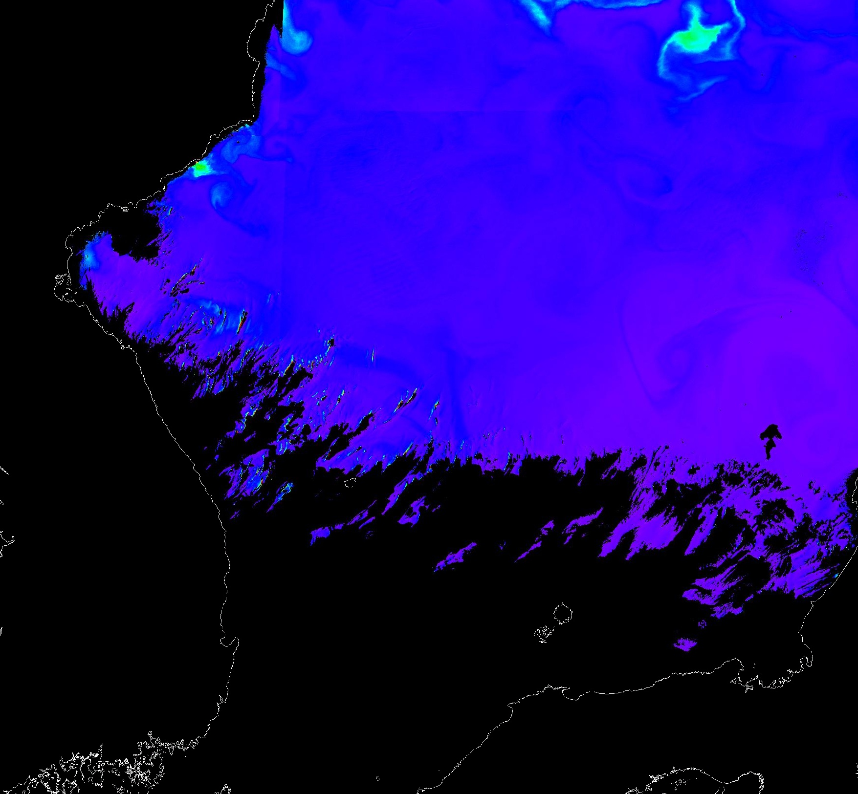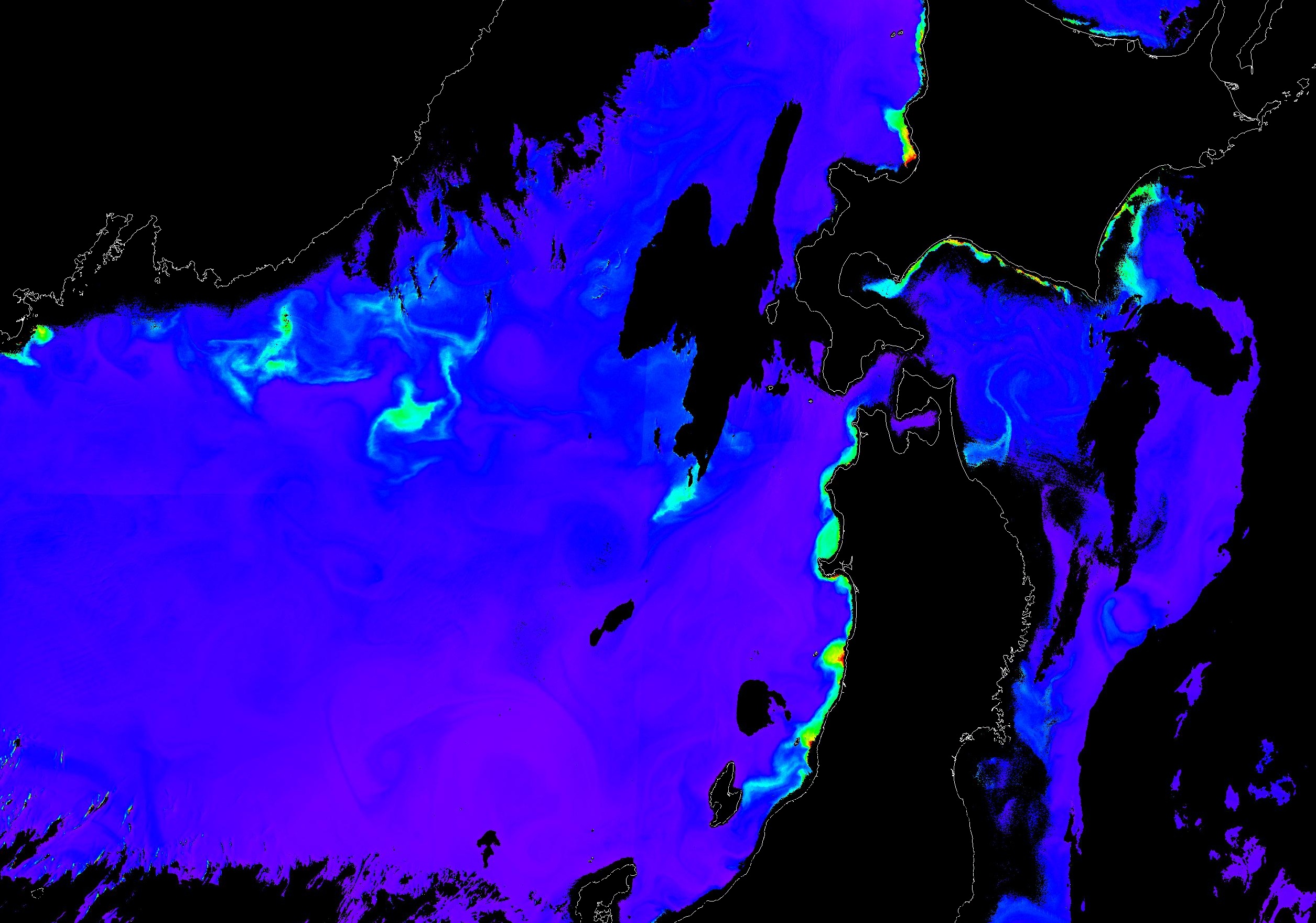 o 2013년 05월 31일 천리안 GOCI 위성영상입니다. [ GOCI : Geostationary Ocean Color Imager ] o 농도분포는 하단 범례를 참고하시기 바랍니다. o 검은색은 구름을 나타냅니다. o 그림을 클릭하시면 크게 보실 수 있습니다. o 천리안 GOCI 클로로필 a 동해지역. o 천리안 GOCI 클로로필 a 서해지역. o 천리안 GOCI 클로로필 a 남해지역. 천리안 GOCI 클로로필 a 둥중국해지역. o 천리안 GOCI 클로로필 a 대화퇴지역. ![]() 천리안 GOCI 영상은 한국해양과학기술원 해양위성센터에서 수신하였습니다. |