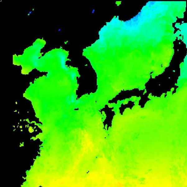 국립수산과학원 위성해양정보실에서 연구중인 2013년 06월 11일 구름이 배제된 수온 영상입니다.