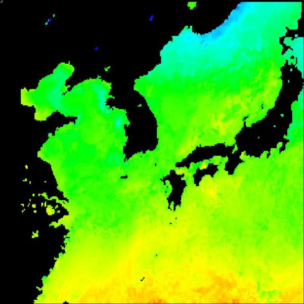 국립수산과학원 위성해양정보실에서 연구중인 2013년 06월 16일 구름이 배제된 수온 영상입니다.