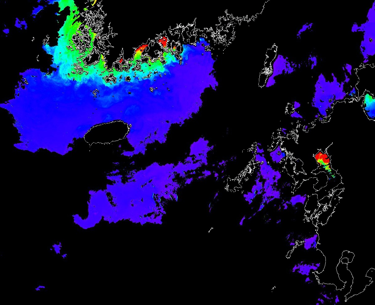 o 2013년 06월 16일 천리안 GOCI 위성영상입니다. [ GOCI : Geostationary Ocean Color Imager ] o 농도분포는 하단 범례를 참고하시기 바랍니다. o 검은색은 구름을 나타냅니다. o 그림을 클릭하시면 크게 보실 수 있습니다. o 천리안 GOCI 클로로필 a 동해지역. o 천리안 GOCI 클로로필 a 서해지역. o 천리안 GOCI 클로로필 a 남해지역. 천리안 GOCI 클로로필 a 둥중국해지역. o 천리안 GOCI 클로로필 a 대화퇴지역. ![]() 천리안 GOCI 영상은 한국해양과학기술원 해양위성센터에서 수신하였습니다. |