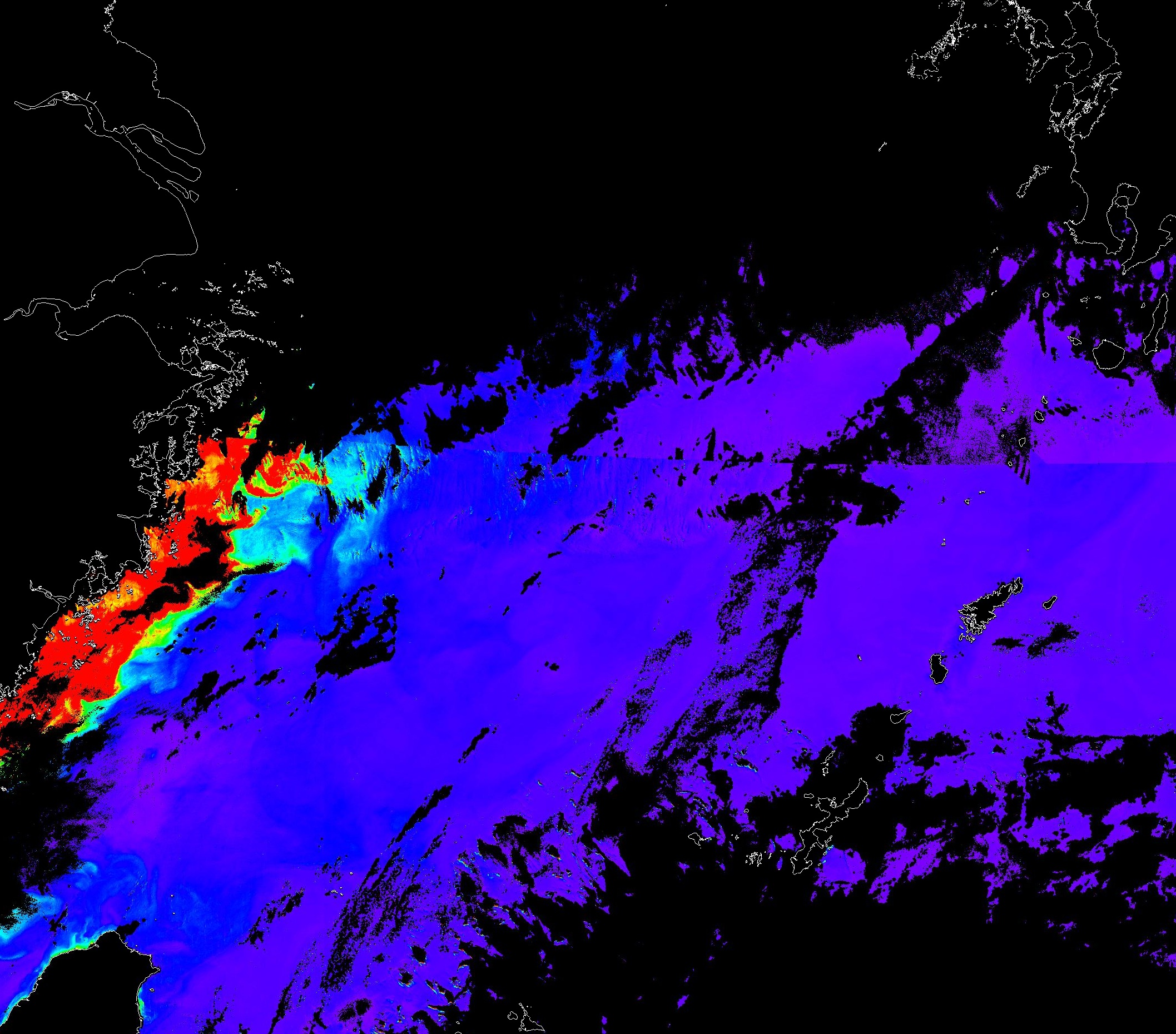 o 2013년 06월 18일 천리안 GOCI 위성영상입니다. [ GOCI : Geostationary Ocean Color Imager ] o 농도분포는 하단 범례를 참고하시기 바랍니다. o 검은색은 구름을 나타냅니다. o 그림을 클릭하시면 크게 보실 수 있습니다. o 천리안 GOCI 클로로필 a 동해지역. o 천리안 GOCI 클로로필 a 서해지역. o 천리안 GOCI 클로로필 a 남해지역. 천리안 GOCI 클로로필 a 둥중국해지역. o 천리안 GOCI 클로로필 a 대화퇴지역. ![]() 천리안 GOCI 영상은 한국해양과학기술원 해양위성센터에서 수신하였습니다. |