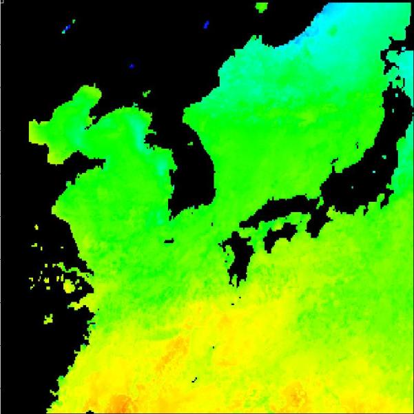 국립수산과학원 위성해양정보실에서 연구중인 2013년 06월 18일 구름이 배제된 수온 영상입니다.