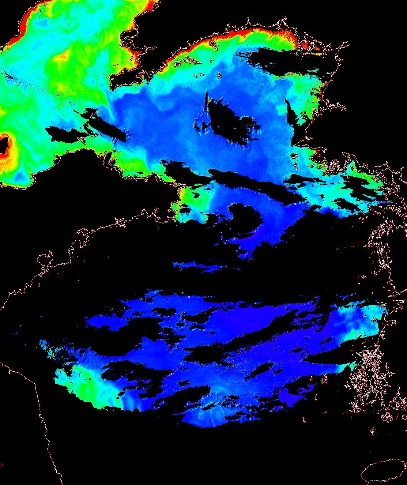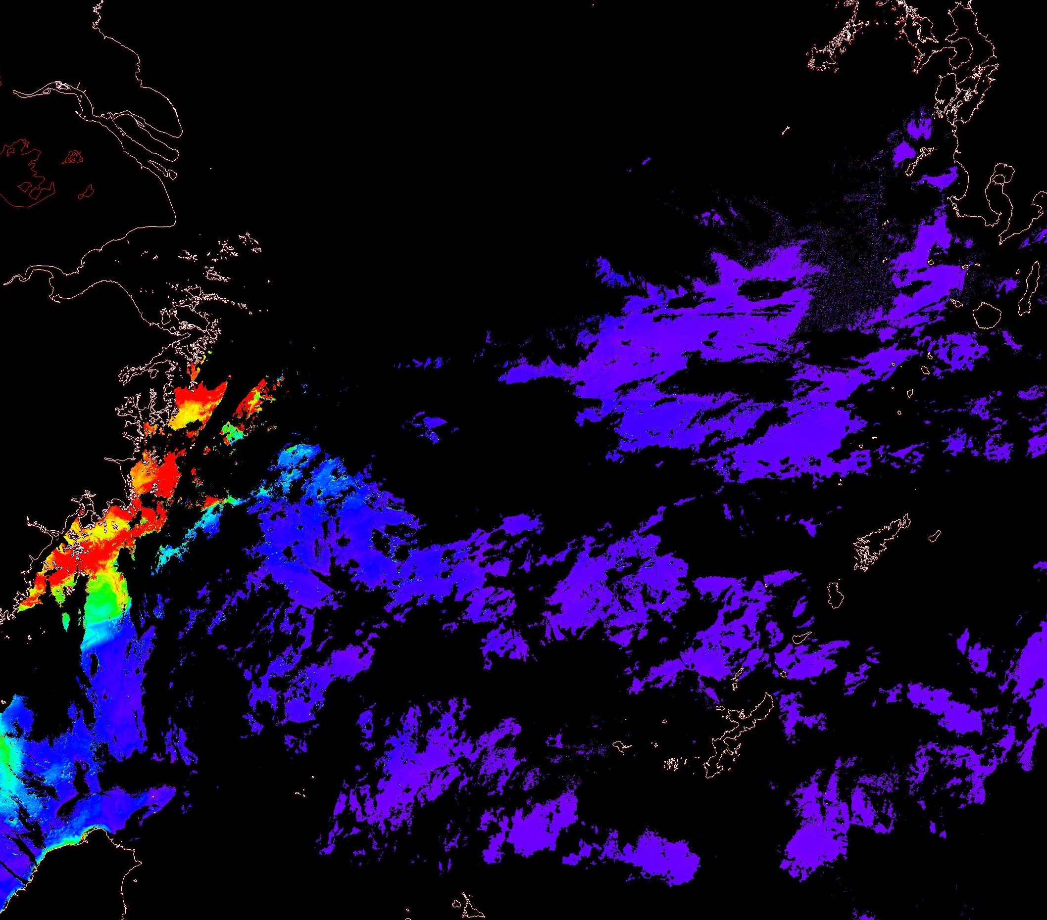 o 2013년 06월 19일 천리안 GOCI 위성영상입니다. [ GOCI : Geostationary Ocean Color Imager ] o 농도분포는 하단 범례를 참고하시기 바랍니다. o 검은색은 구름을 나타냅니다. o 그림을 클릭하시면 크게 보실 수 있습니다. o 천리안 GOCI 클로로필 a 동해지역. o 천리안 GOCI 클로로필 a 서해지역. o 천리안 GOCI 클로로필 a 남해지역. 천리안 GOCI 클로로필 a 둥중국해지역. o 천리안 GOCI 클로로필 a 대화퇴지역. ![]() 천리안 GOCI 영상은 한국해양과학기술원 해양위성센터에서 수신하였습니다. |