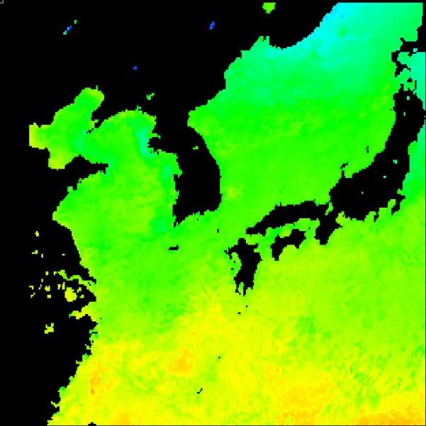 국립수산과학원 위성해양정보실에서 연구중인 2013년 06월 19일 구름이 배제된 수온 영상입니다.