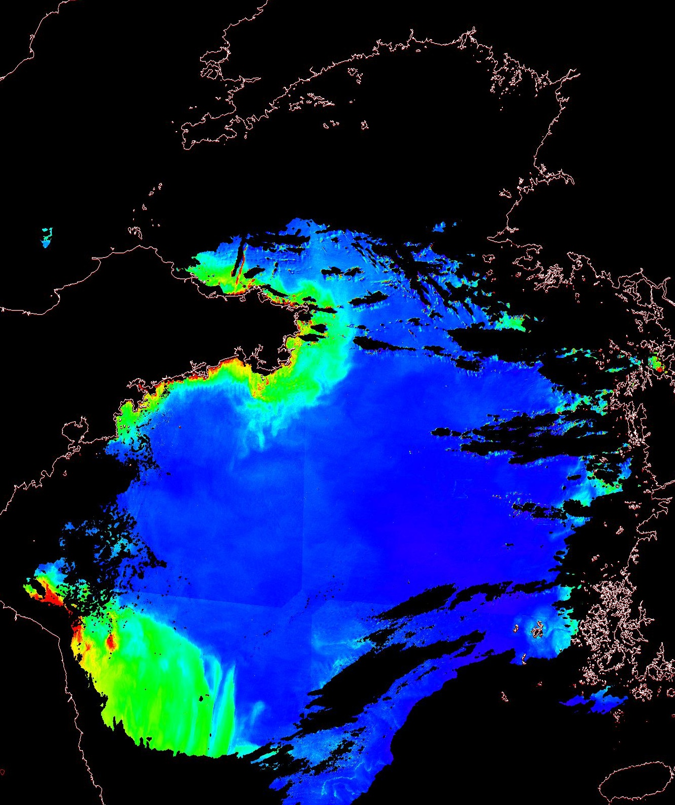 o 2013년 06월 20일 천리안 GOCI 위성영상입니다. [ GOCI : Geostationary Ocean Color Imager ] o 농도분포는 하단 범례를 참고하시기 바랍니다. o 검은색은 구름을 나타냅니다. o 그림을 클릭하시면 크게 보실 수 있습니다. o 천리안 GOCI 클로로필 a 동해지역. o 천리안 GOCI 클로로필 a 서해지역. o 천리안 GOCI 클로로필 a 남해지역. 천리안 GOCI 클로로필 a 둥중국해지역. o 천리안 GOCI 클로로필 a 대화퇴지역. ![]() 천리안 GOCI 영상은 한국해양과학기술원 해양위성센터에서 수신하였습니다. |