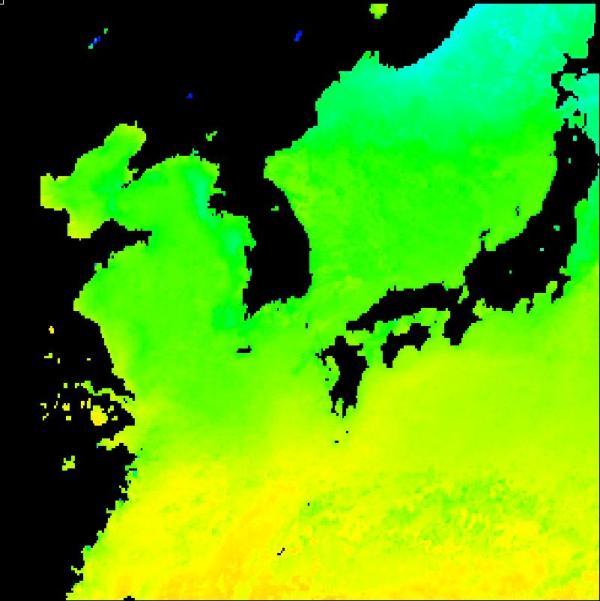 국립수산과학원 위성해양정보실에서 연구중인 2013년 06월 25일 구름이 배제된 수온 영상입니다.