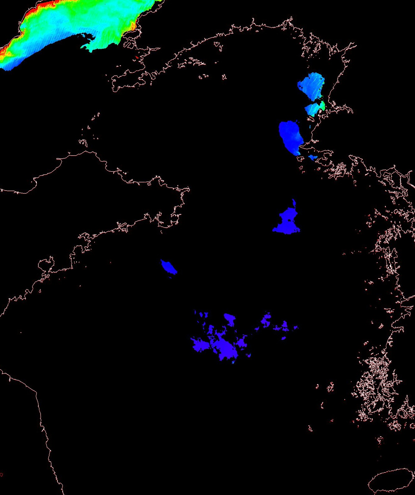 o 2013년 07월 06일 천리안 GOCI 위성영상입니다. [ GOCI : Geostationary Ocean Color Imager ] o 농도분포는 하단 범례를 참고하시기 바랍니다. o 검은색은 구름을 나타냅니다. o 그림을 클릭하시면 크게 보실 수 있습니다. o 천리안 GOCI 클로로필 a 동해지역. o 천리안 GOCI 클로로필 a 서해지역. o 천리안 GOCI 클로로필 a 남해지역. 천리안 GOCI 클로로필 a 둥중국해지역. o 천리안 GOCI 클로로필 a 대화퇴지역. ![]() 천리안 GOCI 영상은 한국해양과학기술원 해양위성센터에서 수신하였습니다. |