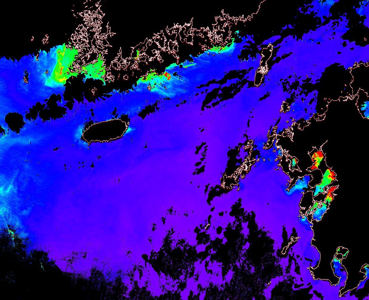 o 2013년 07월 13일 천리안 GOCI 위성영상입니다. [ GOCI : Geostationary Ocean Color Imager ] o 농도분포는 하단 범례를 참고하시기 바랍니다. o 검은색은 구름을 나타냅니다. o 그림을 클릭하시면 크게 보실 수 있습니다. o 천리안 GOCI 클로로필 a 동해지역. o 천리안 GOCI 클로로필 a 서해지역. o 천리안 GOCI 클로로필 a 남해지역. 천리안 GOCI 클로로필 a 둥중국해지역. o 천리안 GOCI 클로로필 a 대화퇴지역. ![]() 천리안 GOCI 영상은 한국해양과학기술원 해양위성센터에서 수신하였습니다. |