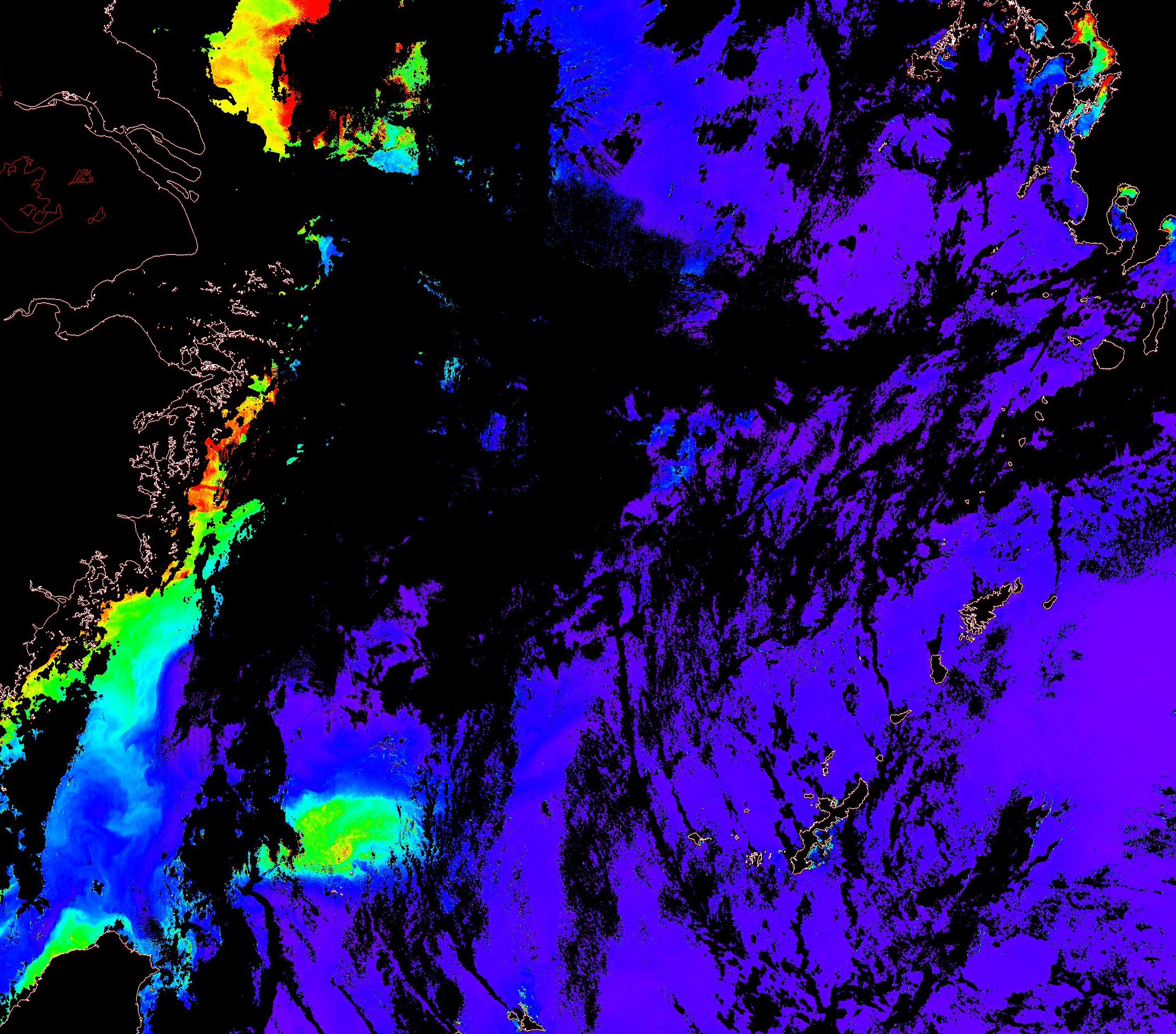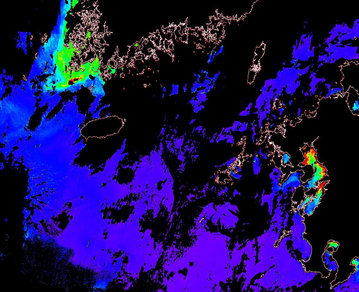o 2013년 07월 15일 천리안 GOCI 위성영상입니다. [ GOCI : Geostationary Ocean Color Imager ] o 농도분포는 하단 범례를 참고하시기 바랍니다. o 검은색은 구름을 나타냅니다. o 그림을 클릭하시면 크게 보실 수 있습니다. o 천리안 GOCI 클로로필 a 동해지역. o 천리안 GOCI 클로로필 a 서해지역. o 천리안 GOCI 클로로필 a 남해지역. 천리안 GOCI 클로로필 a 둥중국해지역. o 천리안 GOCI 클로로필 a 대화퇴지역. ![]() 천리안 GOCI 영상은 한국해양과학기술원 해양위성센터에서 수신하였습니다. |