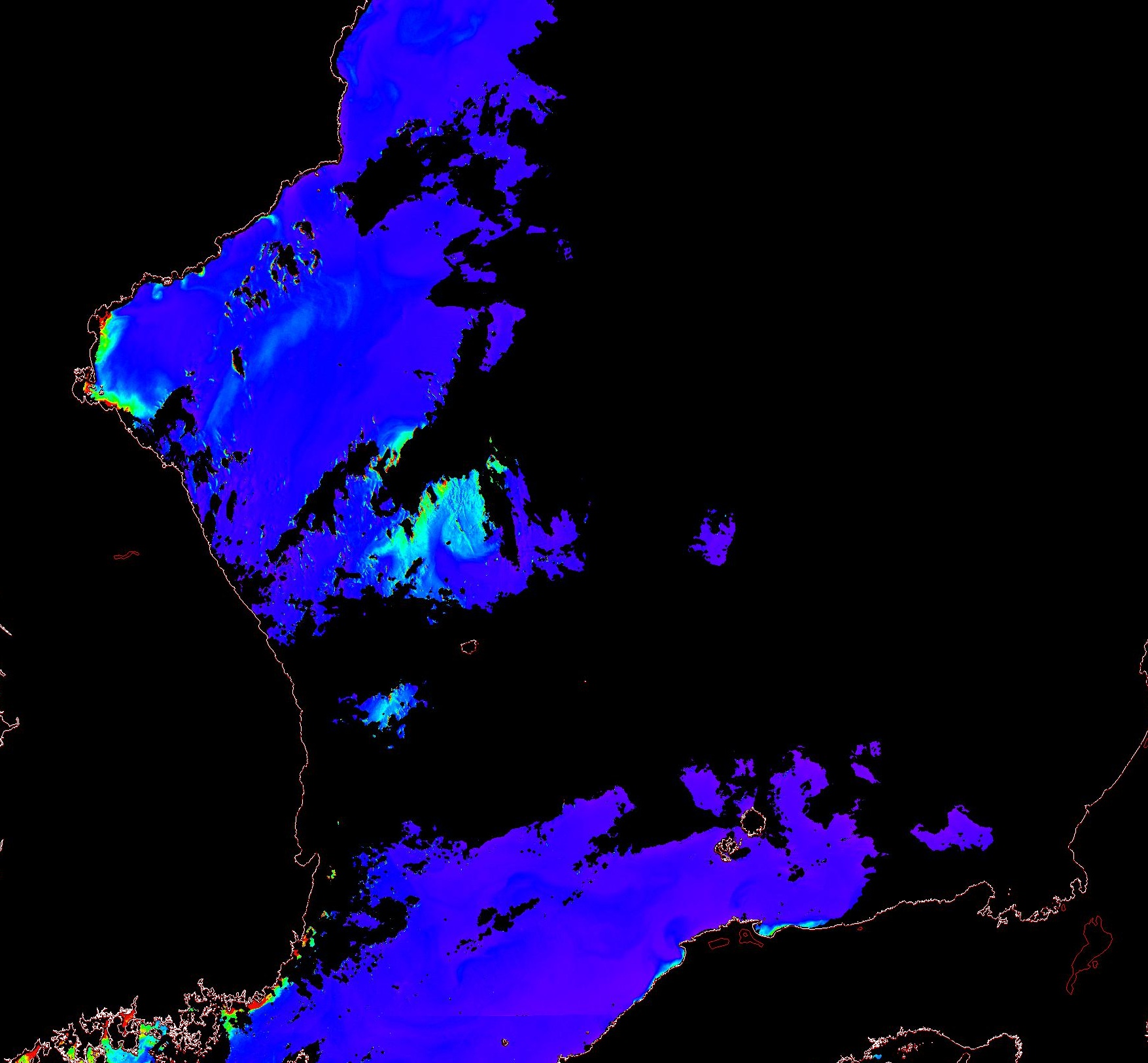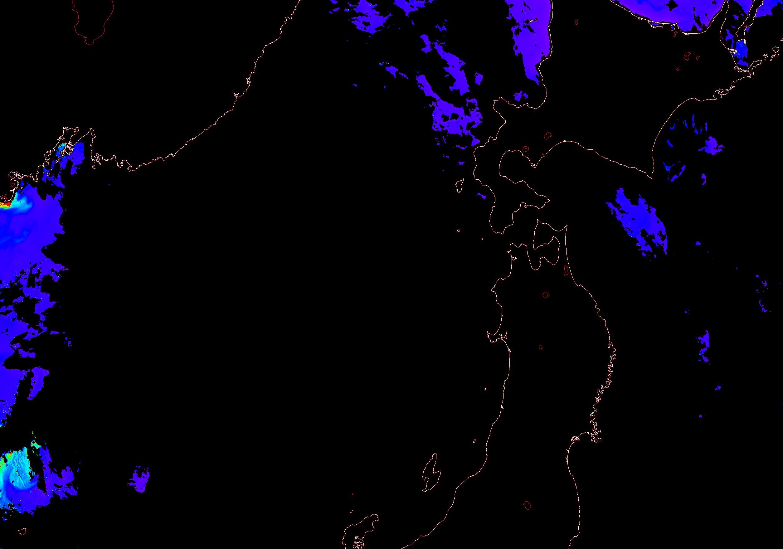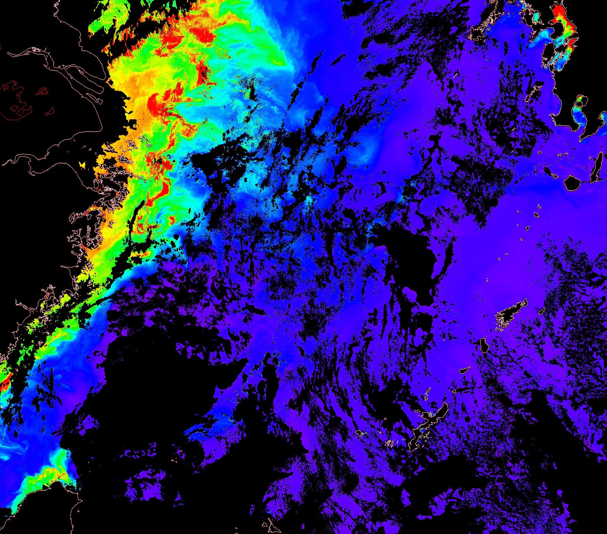 o 2013년 07월 17일 천리안 GOCI 위성영상입니다. [ GOCI : Geostationary Ocean Color Imager ] o 농도분포는 하단 범례를 참고하시기 바랍니다. o 검은색은 구름을 나타냅니다. o 그림을 클릭하시면 크게 보실 수 있습니다. o 천리안 GOCI 클로로필 a 동해지역. o 천리안 GOCI 클로로필 a 서해지역. o 천리안 GOCI 클로로필 a 남해지역. 천리안 GOCI 클로로필 a 둥중국해지역. o 천리안 GOCI 클로로필 a 대화퇴지역. ![]() 천리안 GOCI 영상은 한국해양과학기술원 해양위성센터에서 수신하였습니다. |