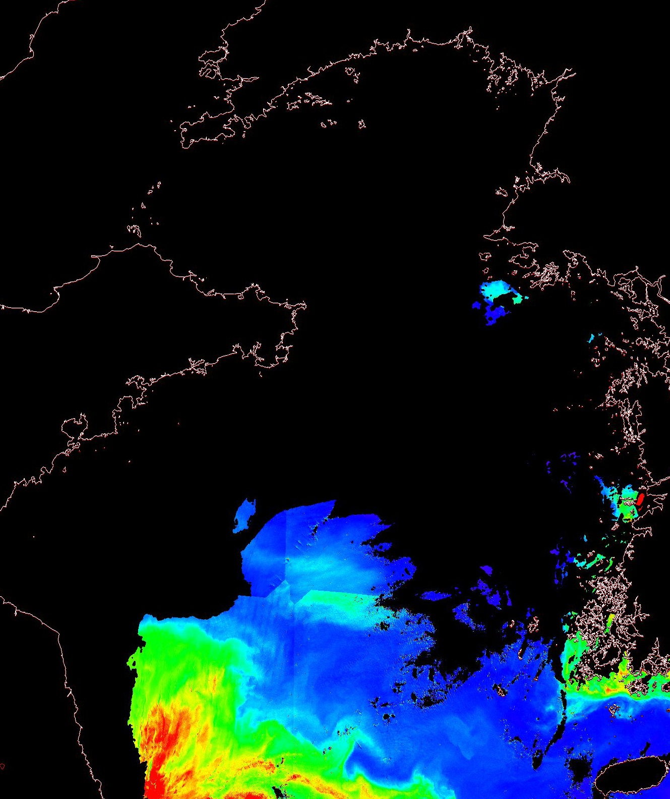 o 2013년 07월 18일 천리안 GOCI 위성영상입니다. [ GOCI : Geostationary Ocean Color Imager ] o 농도분포는 하단 범례를 참고하시기 바랍니다. o 검은색은 구름을 나타냅니다. o 그림을 클릭하시면 크게 보실 수 있습니다. o 천리안 GOCI 클로로필 a 동해지역. o 천리안 GOCI 클로로필 a 서해지역. o 천리안 GOCI 클로로필 a 남해지역. 천리안 GOCI 클로로필 a 둥중국해지역. o 천리안 GOCI 클로로필 a 대화퇴지역. ![]() 천리안 GOCI 영상은 한국해양과학기술원 해양위성센터에서 수신하였습니다. |