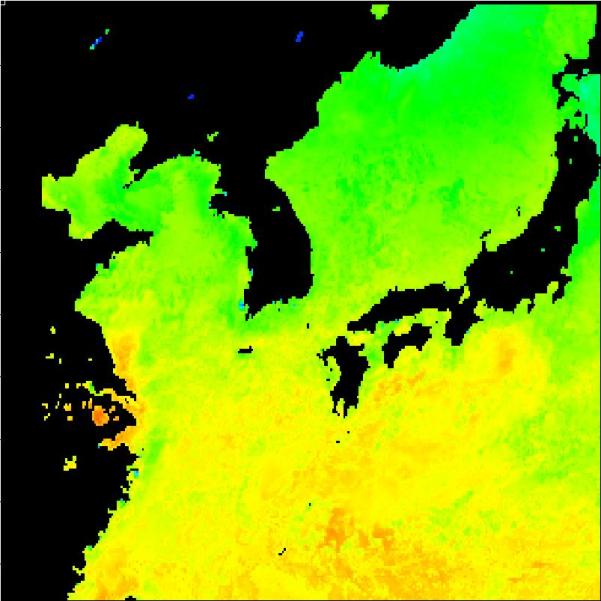 국립수산과학원 위성해양정보실에서 연구중인 2013년 07월 23일 구름이 배제된 수온 영상입니다.