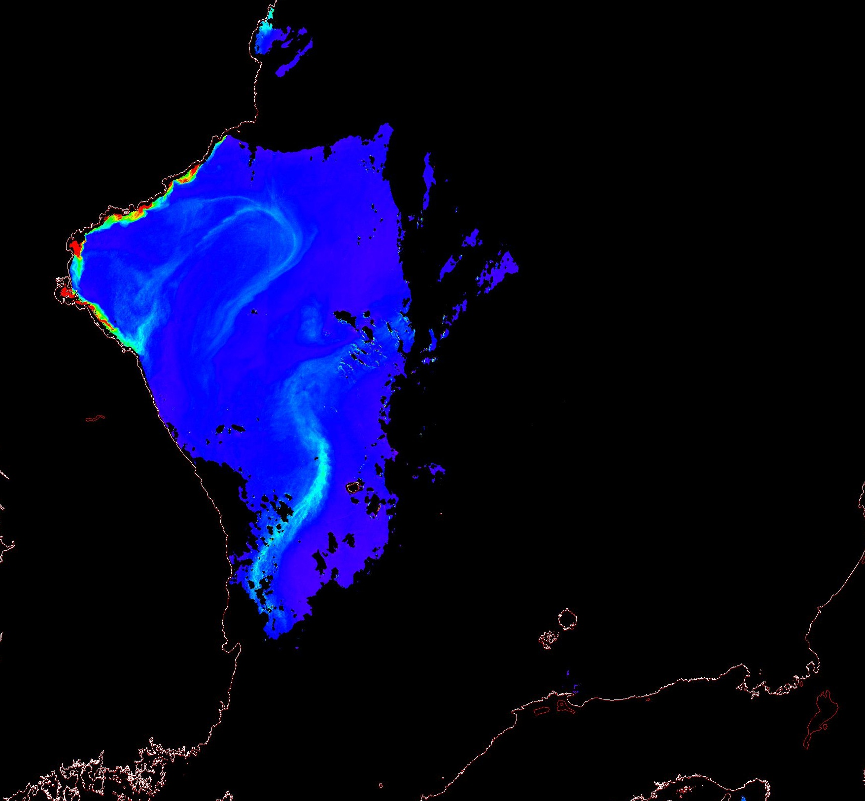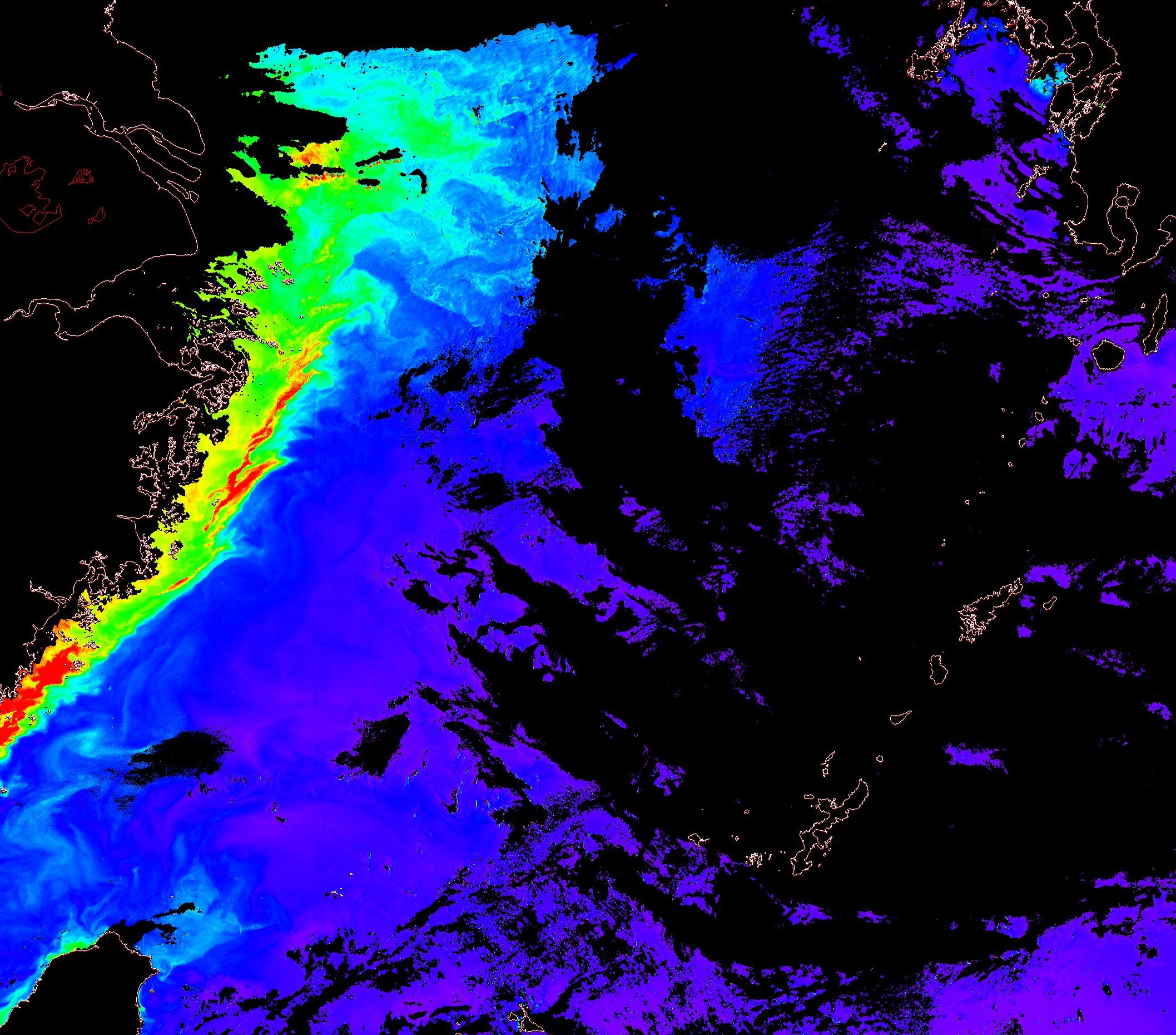 o 2013년 07월 24일 천리안 GOCI 위성영상입니다. [ GOCI : Geostationary Ocean Color Imager ] o 농도분포는 하단 범례를 참고하시기 바랍니다. o 검은색은 구름을 나타냅니다. o 그림을 클릭하시면 크게 보실 수 있습니다. o 천리안 GOCI 클로로필 a 동해지역. o 천리안 GOCI 클로로필 a 서해지역. o 천리안 GOCI 클로로필 a 남해지역. 천리안 GOCI 클로로필 a 둥중국해지역. o 천리안 GOCI 클로로필 a 대화퇴지역. ![]() 천리안 GOCI 영상은 한국해양과학기술원 해양위성센터에서 수신하였습니다. |