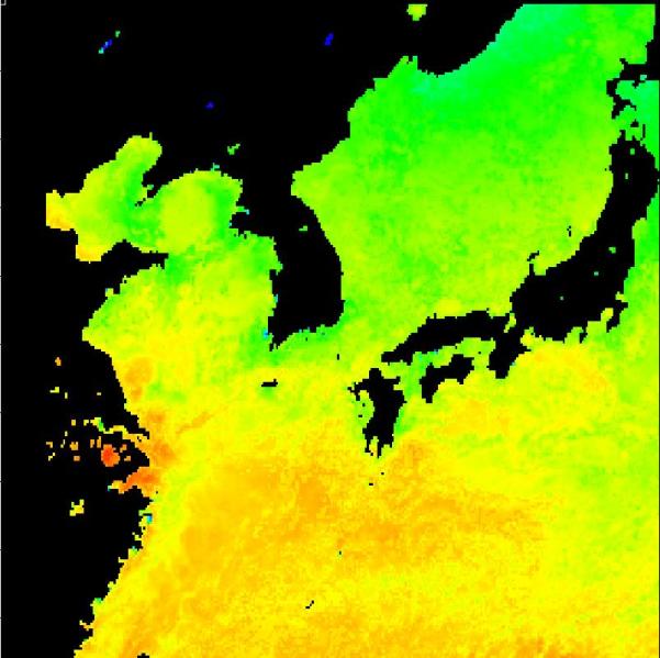 국립수산과학원 위성해양정보실에서 연구중인 2013년 07월 30일 구름이 배제된 수온 영상입니다.