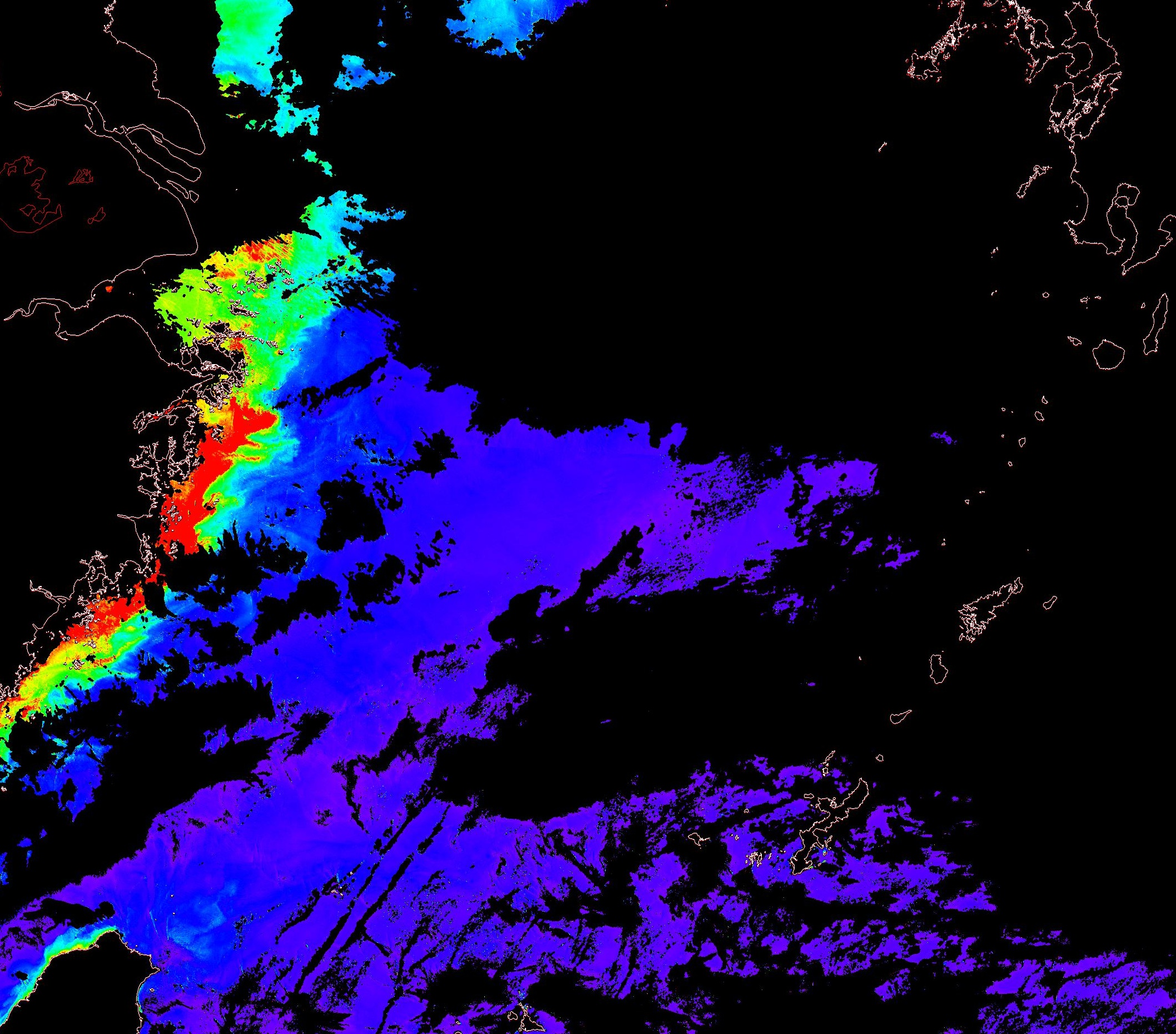 o 2013년 08월 05일 천리안 GOCI 위성영상입니다. [ GOCI : Geostationary Ocean Color Imager ] o 농도분포는 하단 범례를 참고하시기 바랍니다. o 검은색은 구름을 나타냅니다. o 그림을 클릭하시면 크게 보실 수 있습니다. o 천리안 GOCI 클로로필 a 동해지역. o 천리안 GOCI 클로로필 a 서해지역. o 천리안 GOCI 클로로필 a 남해지역. 천리안 GOCI 클로로필 a 둥중국해지역. o 천리안 GOCI 클로로필 a 대화퇴지역. ![]() 천리안 GOCI 영상은 한국해양과학기술원 해양위성센터에서 수신하였습니다. |